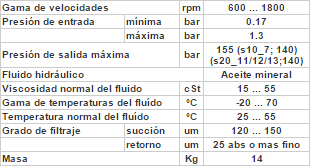 Pumps LMC series 20 10, are of the type to vanes, construction balanced hydraulically, fixed displacement, internal drainage. They are possible to be used with several types of fluid and with speed motors it fixes or variable.