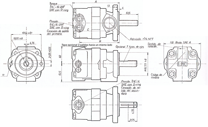 Las bombas LMC serie 20 P, son del tipo a paletas, construcción balanceada hidráulicamente, desplazamiento fijo, drenaje interno. Se pueden usar con varios tipos de fluídos y con motores de velocidad fija o variable.