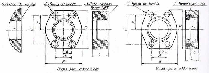 Este tipo de bridas son para usar en la superficie de montaje tipo SAE con cuatro tornillos. Los juegos de bridas incluyen los tornillos y sellos o-ring necesarios para su instalación.